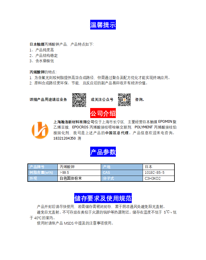Copyright © 2021 有机酸单体盐--丙烯酸钾-上海瀚洛新材料有限公司 地址:中国上海市长宁区沪ICP备20020327号-1 沪公网安备 31010502006011号